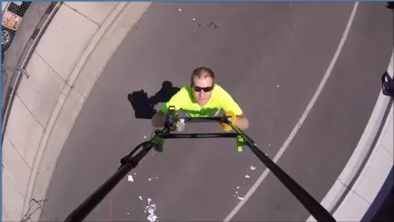 David is known for his outrageous world record’s but in his latest accomplishment, he balances a running lawnmower on his chin for 3 minutes and 52 seconds.
