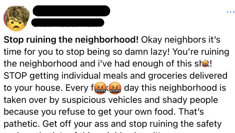 This Karen is a special breed of awful. This post is laced with paranoia, insensitivity, and a heaping amount of “Karen Logic”. Who could possibly care about whether or not people are stocking up on Uber Eats or not. Take a look.