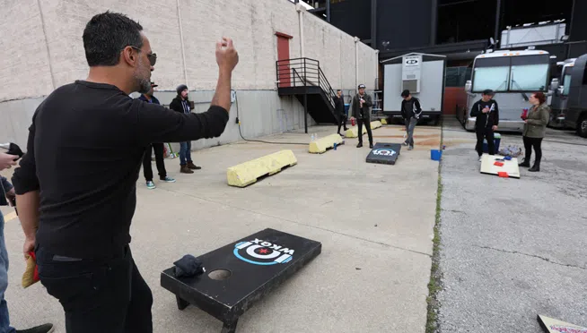 Stabbing Westward (featuring a familiar voice you heard on 101WKQX, wALT) enjoyed a round of beers and game of bags with lucky winners backstage at PIQNIQ 2017.photos of Beers ‘n Bags with...