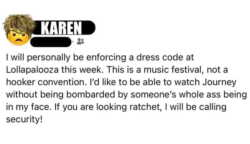 This Karen is NOT happy about how people dress at Lollapalooza…