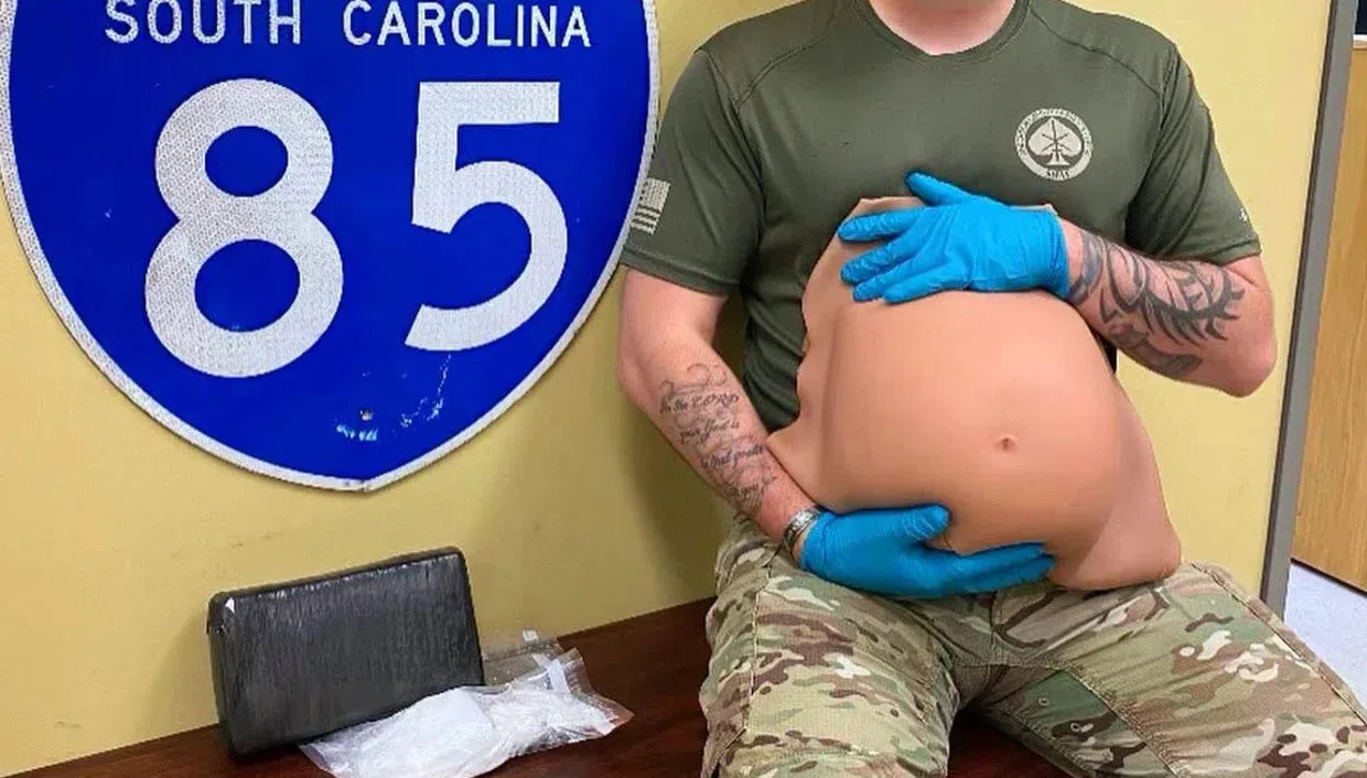 Two people were arrested in South Carolina and accused of trying to traffic cocaine under a false pregnancy belly, authorities said. After nearly colliding with an 18-wheeler, the officers pulled over...